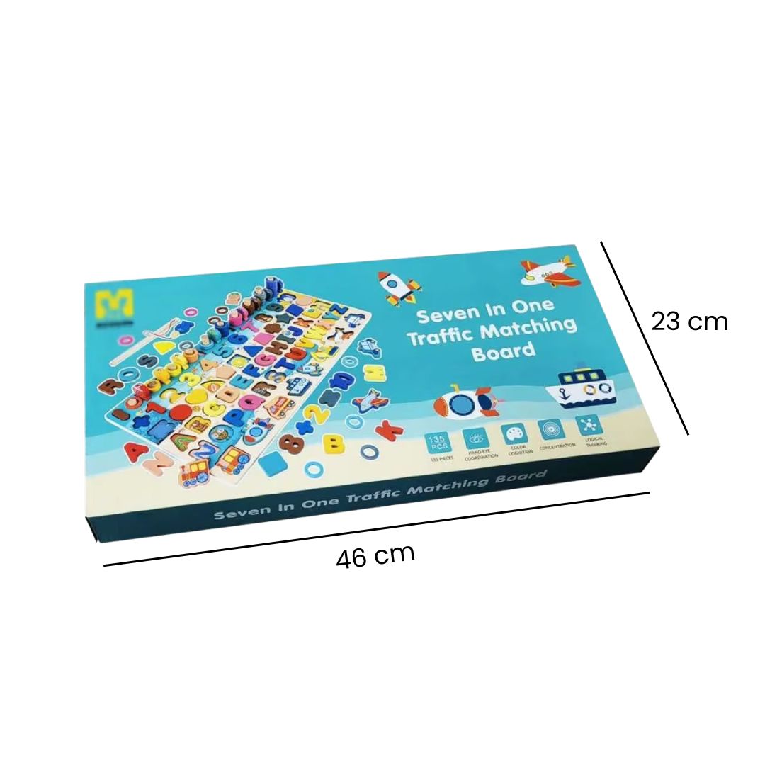 Un joc educativ complet, tip tablă din lemn, conceput special pentru dezvoltarea abilităților de bază ale copilului. Cu 135 de piese viu colorate și activități multiple, această tablă 7 în 1 este perfectă pentru joacă inteligentă, de zi cu zi.