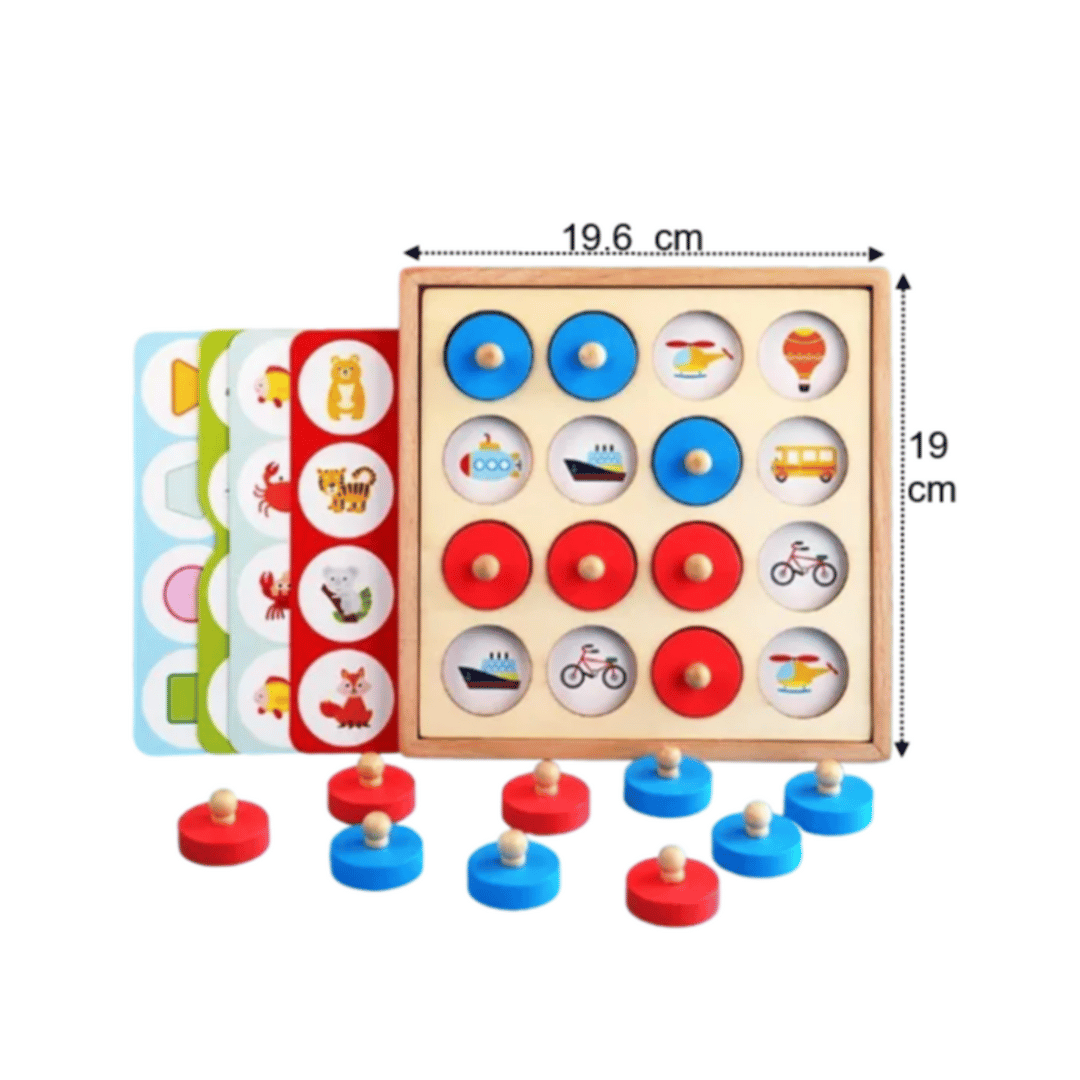 Acest joc educativ din lemn este conceput pentru a stimula memoria vizuală, concentrarea și dezvoltarea cognitivă a copiilor. Ideal pentru activități recreative și educative, acest joc captivant oferă ore întregi de distracție interactivă.