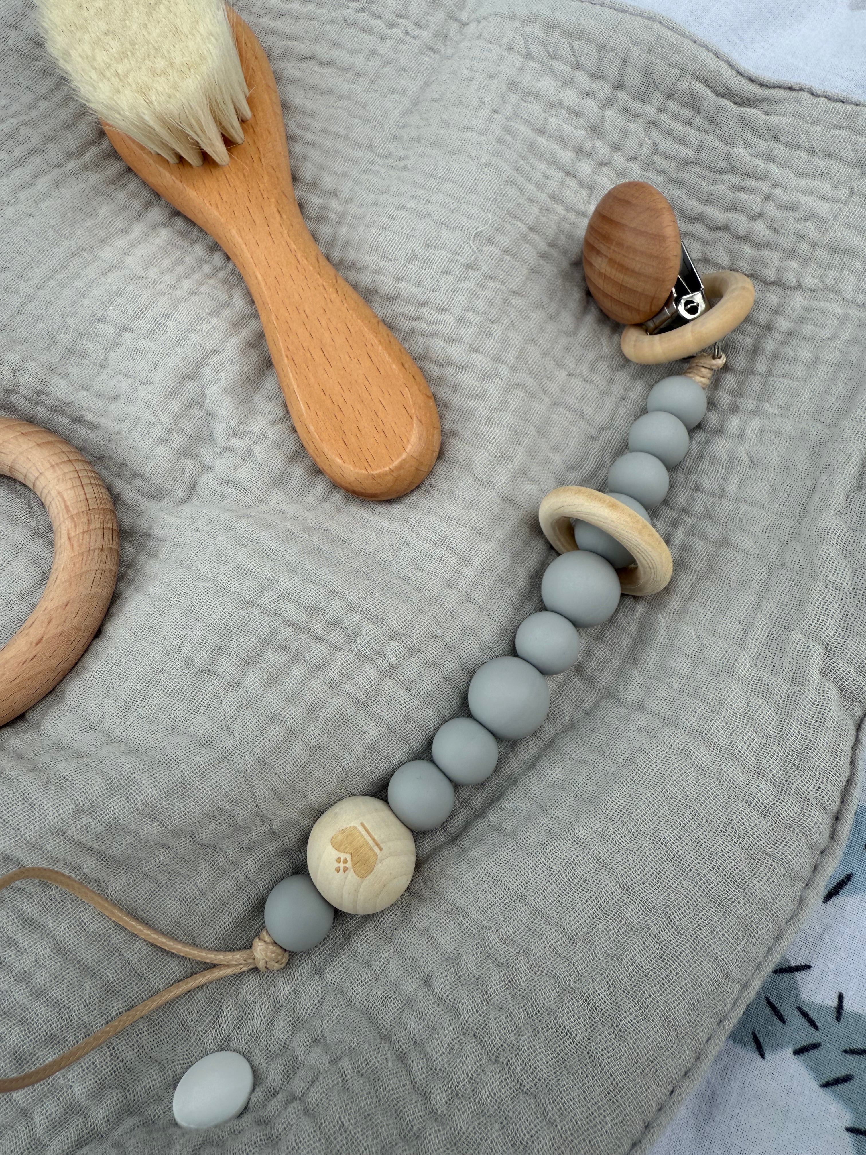 Lănțișor pentru suzetă, realizat din silicon și lemn natural