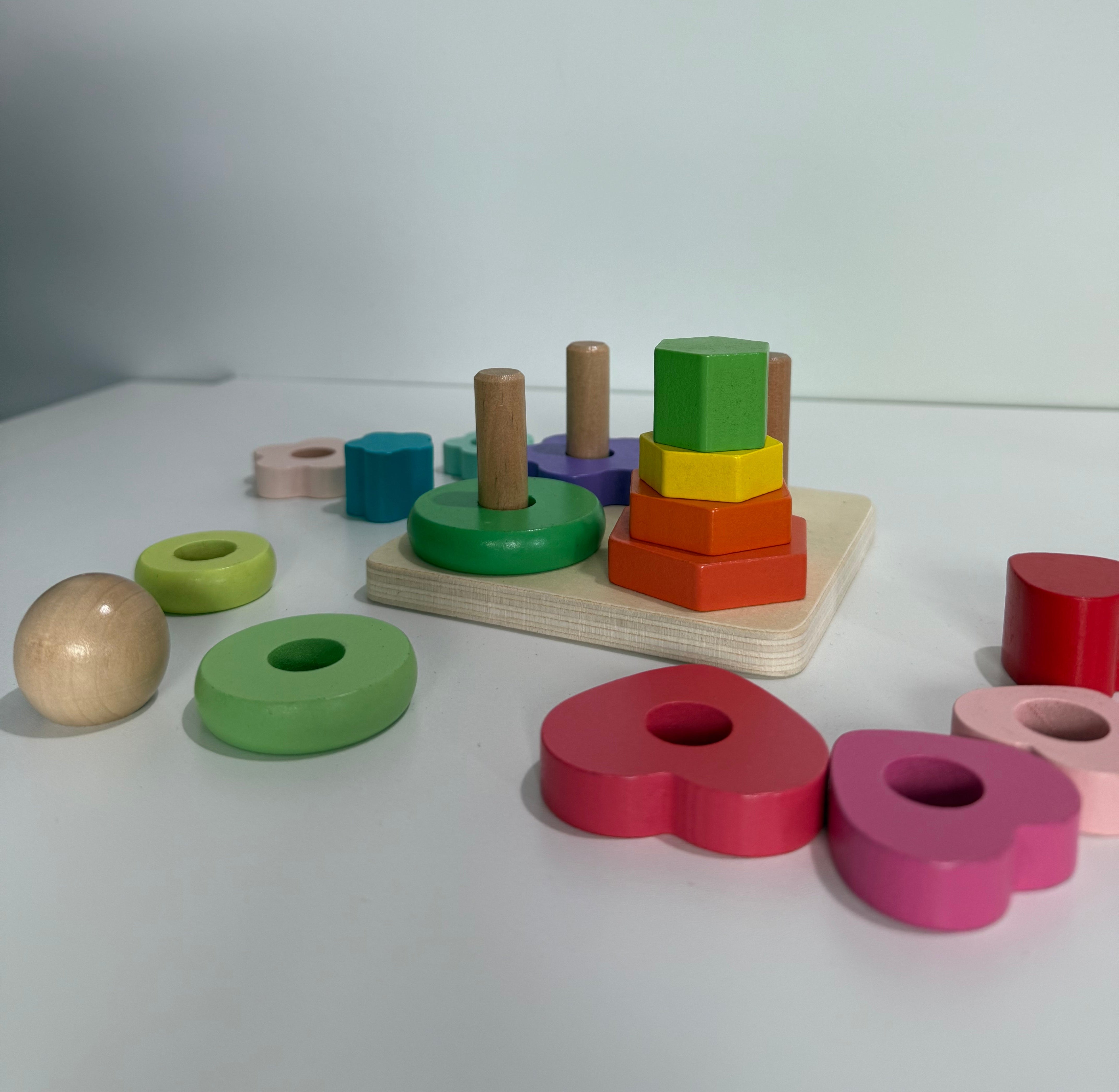 Un joc educativ colorat și captivant, conceput pentru a ajuta copiii să recunoască forme, culori și dimensiuni! Acest sortator din lemn cu 4 coloane oferă o experiență tactilă excelentă și încurajează gândirea logică, coordonarea mână-ochi și dezvoltarea motricității fine.